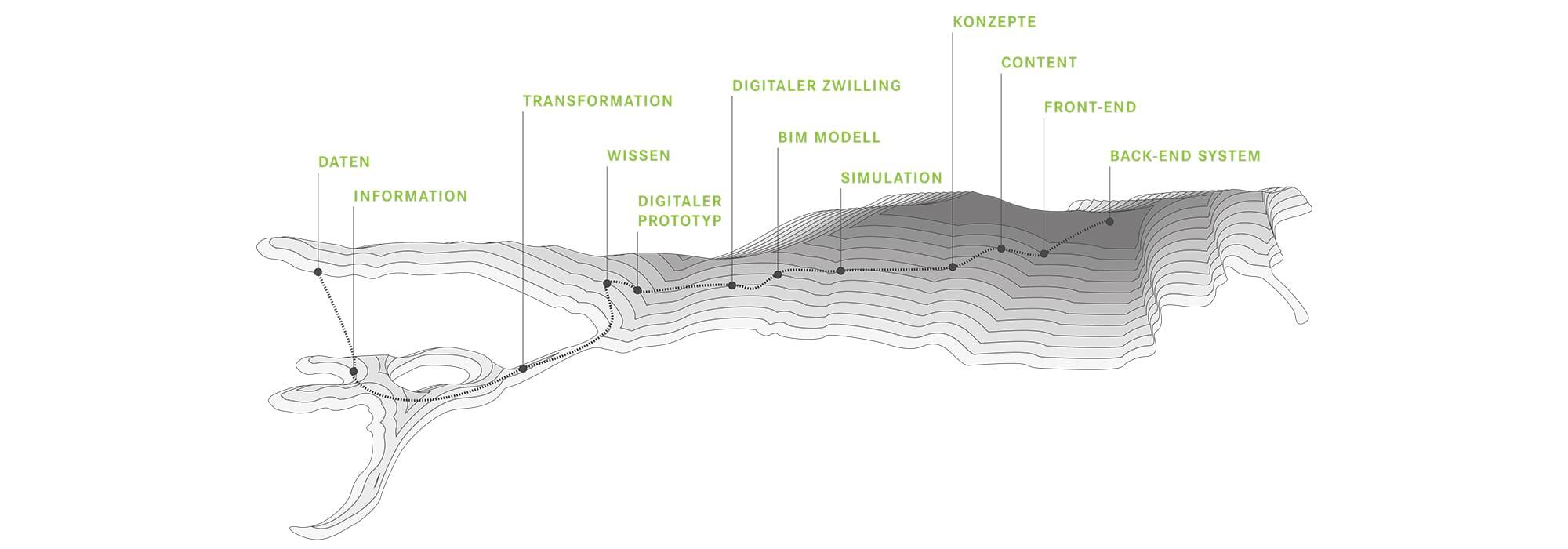 Für Datenvisualisierung konzipieren und entwickeln wir optimale Front-End sowie Back-End-Systeme. So werden mittels virtueller Technologien Daten in Wissen transformiert.