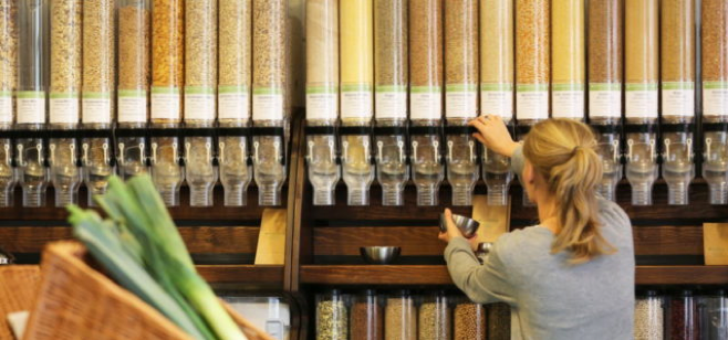 Eis-Plastikdosen oder Essiggurkengläser wiederverwertet werden. So kann man seine Einkäufe auch in Geschäften erledigen die Lebensmittel unverpackt zum Abfüllen anbieten. Dies spart nicht nur Zuhause Abfall ein, sondern auch schon direkt beim Einkauf. Das Eigenrecycelte kann auch als Vesperdose oder Lagerungsmöglichkeit bestimmter Lebensmittel genutzt werden. So bleiben diese länger haltbar und es können auch Nachfüllpackungen erworben werden – diese sind oftmals billiger und aus besser recycelbarem Material hergestellt. Viele Supermärkte (Frischetheke) oder Metzgereien bieten auch schon an die Ware direkt in mitgebrachte Behältnisse zu geben.