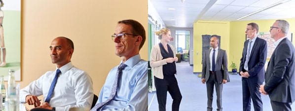 Ein reiner Höflichkeitsbesuch war dieses Zusammentreffen zwischen der Stadt und dem Familienunternehmen aber nicht. Besonders interessierte die beiden Besucher, wie die STAR-Geschäftsleitung, vertreten durch Ramona Kaden, Oliver Messer und Katharina Hennigs, die Chancen des Wirtschaftsstandorts Böblingen jetzt und in der Zukunft einschätzt – und welche Rolle dabei die hier ansässigen Arbeitgeber spielen. Bei einem gemeinsamen Rundgang tauschten sich die Teilnehmer ausführlich zur künftigen Entwicklung des Gewerbegebiets „Hulb“, über soziales Engagement wie z. B. der Sterntaler, über Trendthemen wie New Mobility und die zunehmende Digitalisierung auch im öffentlichen Bereich aus. Man war sich schnell einig: Schnittstellen und Potenzial zur engeren Zusammenarbeit zwischen Stadt und Wirtschaft gibt es viele.
