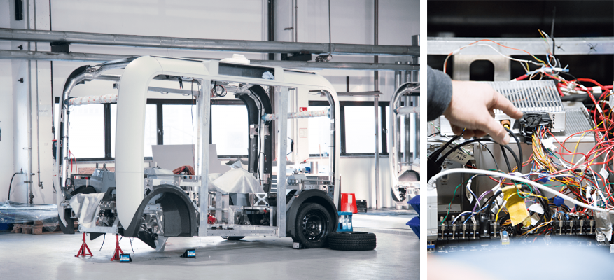 Und das ist längst nicht die einzige Besonderheit des autonom fahrenden Busses, der darüber hinaus intelligent mit seiner Umwelt kommuniziert. Ebenso innovativ wie seine Technik war die Idee für seine Entstehung und Produktion. Von einer OnlineCommunity entworfen, setzte er sich in einem deutschlandweiten Wettbewerb als beste aus mehr als 80 Ideen zu Mobilitätskonzepten der Zukunft durch.