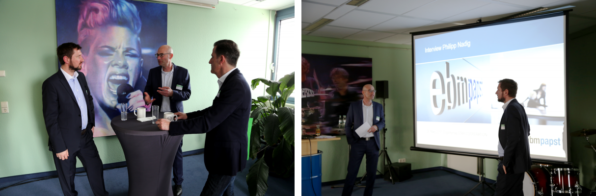 Philipp Nadig von ebm papst berichtete im Interview von seinen Erfahrungen mit der Automatisierung des Marketings durch MRM- und PIM-Systeme. Zur Sprache kamen dabei die Hürden, die dabei zu bewältigen sind, aber auch die Vorteile, die dadurch entstehen. Im Gespräch wurde betont, dass die konzeptionelle Phase bei der Einführung solcher Systeme das eine ist, ab der Implementierung aber „beginnt der Schweiß“, so der interviewende Albrecht Heidinger. Das Publikum lobte in der anschließenden Fragerunde die ehrlichen Einblicke in die Erfahrungen von ebm papst, die Herr Nadig den Zuhörern bot.