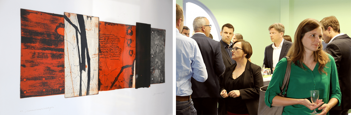 Bei der äußerst gut besuchten Ausstellungseröffnung konnten die Besucher mit dem Künstler direkt ins Gespräch kommen. Während einer Tour durchs Haus konnten sie zudem seine Werke genau inspizieren. Sie sind über mehrere Wochen hinweg in den Gängen der STAR COOPERATION ausgestellt und können dort auch erstanden werden. Mit leckerem Fingerfood und einem kühlen Getränk ließen die Besucher die Besichtigung kulinarisch ausklingen. Vor dem Hintergrund der faszinierenden Kunst ergab sich dabei reichlich Gelegenheit zu angeregten Gesprächen.