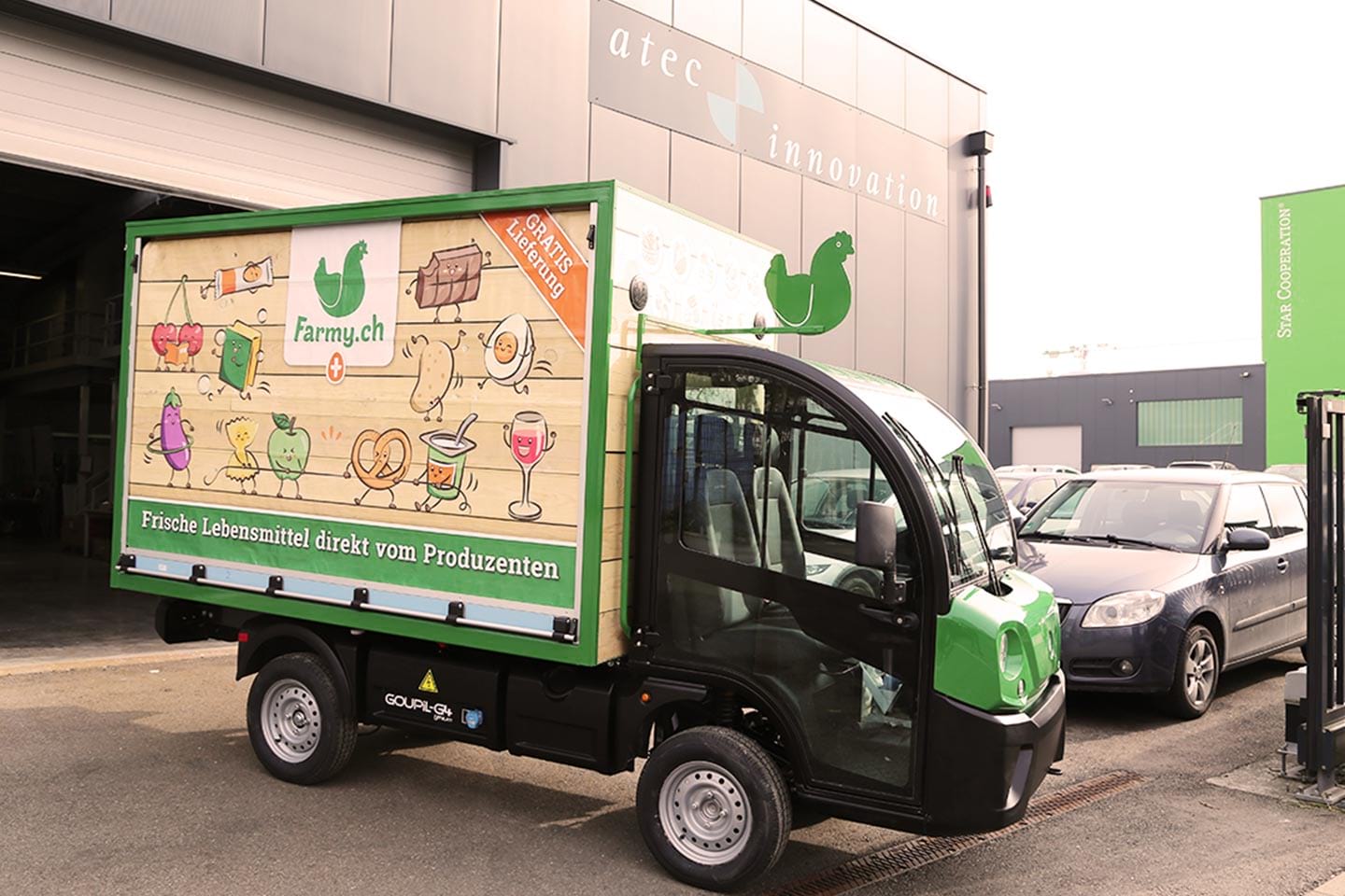 Unser Kunde bringt handverlesene Produkte vom Bauern nebenan bis zur Haustüre. So umweltschonend und nachhaltig wie möglich. Stichwort: Green Mobility. Deshalb setzt er auf Lieferwagen, die mit Elektromotor fahren. Die Herausforderung: Der Kunde hatte zu Projektbeginn nur das Fahrgestell mit E-Antrieb. Nur das allein macht noch keinen praktischen Transporter für Lebensmittel aus. Ein durchdachter Fahrzeugaufbau musste her – exakt die richtige Aufgabe für die Tüftler unserer Tochter atec innovation.